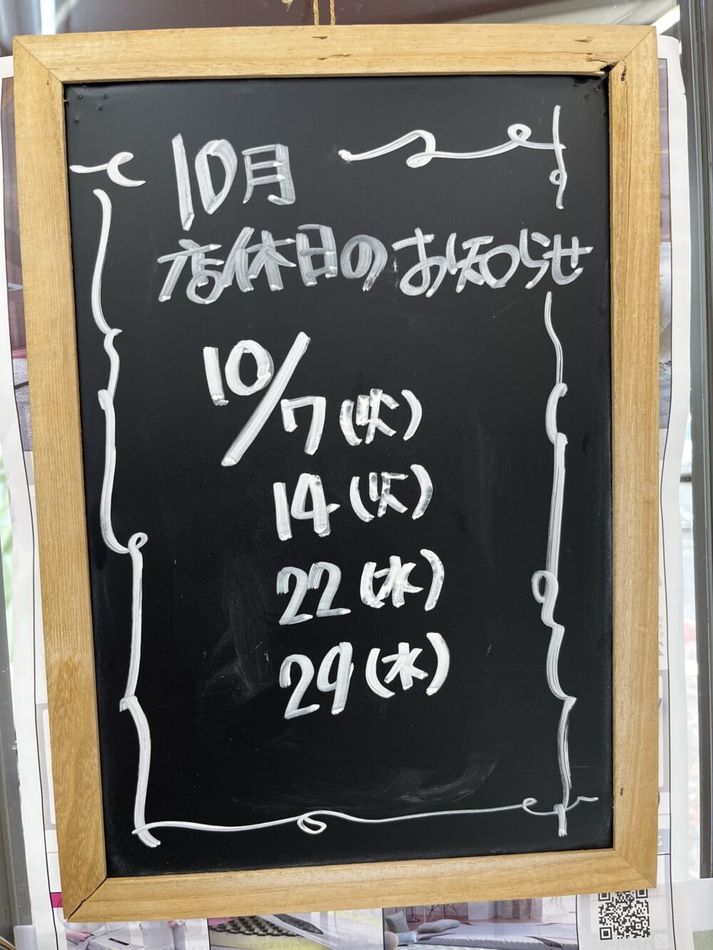 いつもご愛顧いただき誠にありがとうございます。 10月の店休日のお知らせです。